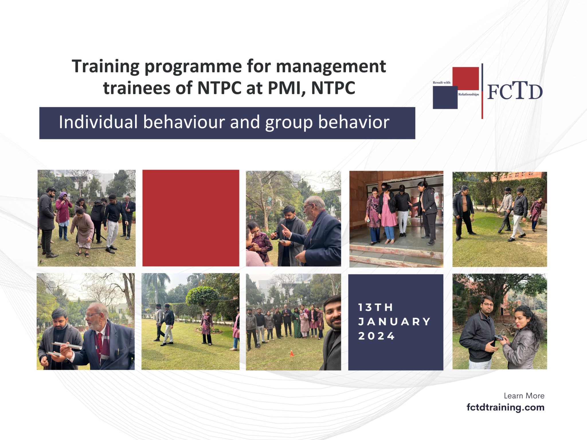 FCTD has conducted a training programme for management trainees of NTPC at PMI, NTPC Noida on 13 January 2024.