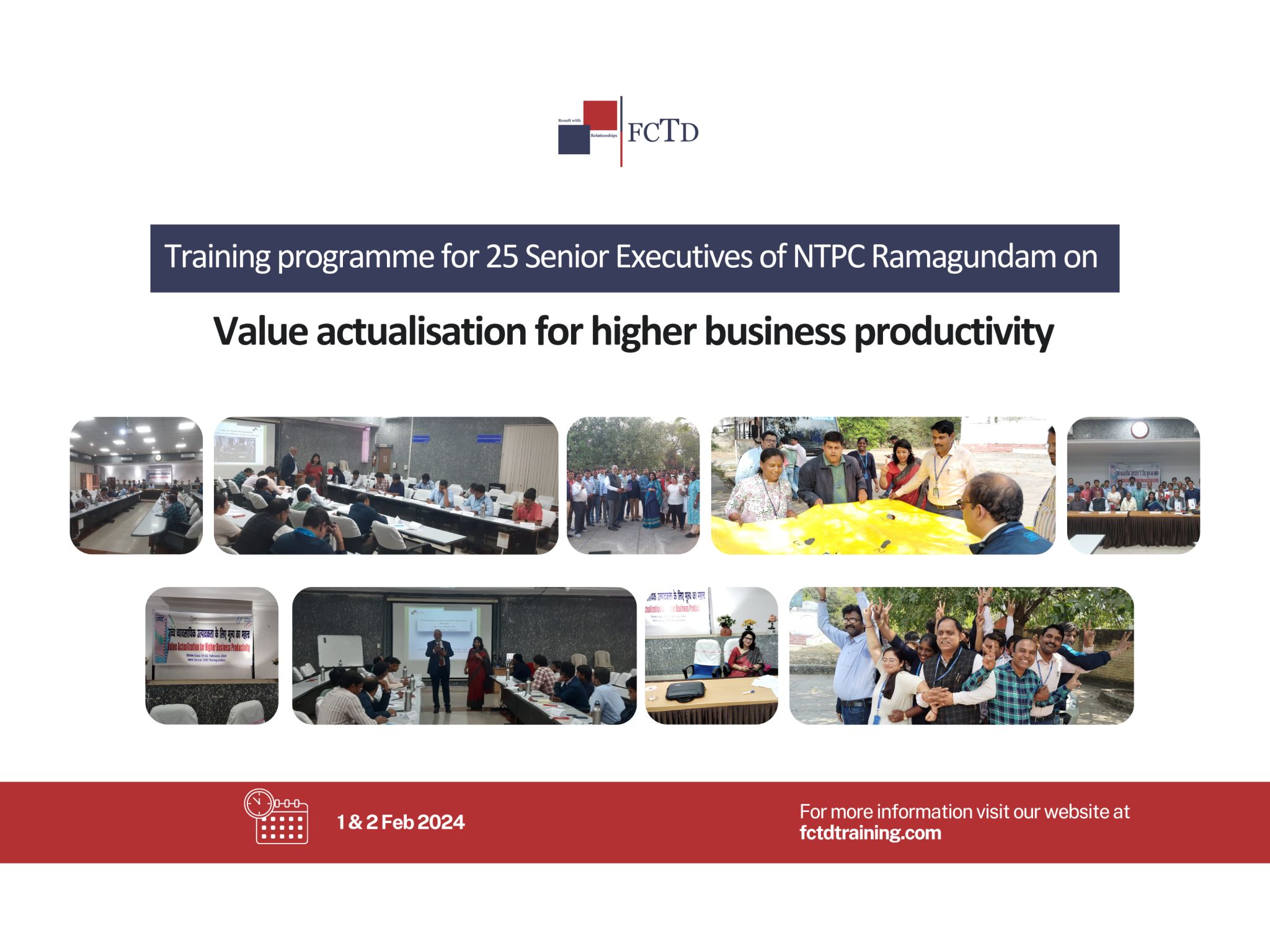 FCTD conducted a Two-Day Program on ‘Value Actualization for Higher Business Productivity’ on February 1 & 2, 2024 at NTPC Limited Ramagundam.